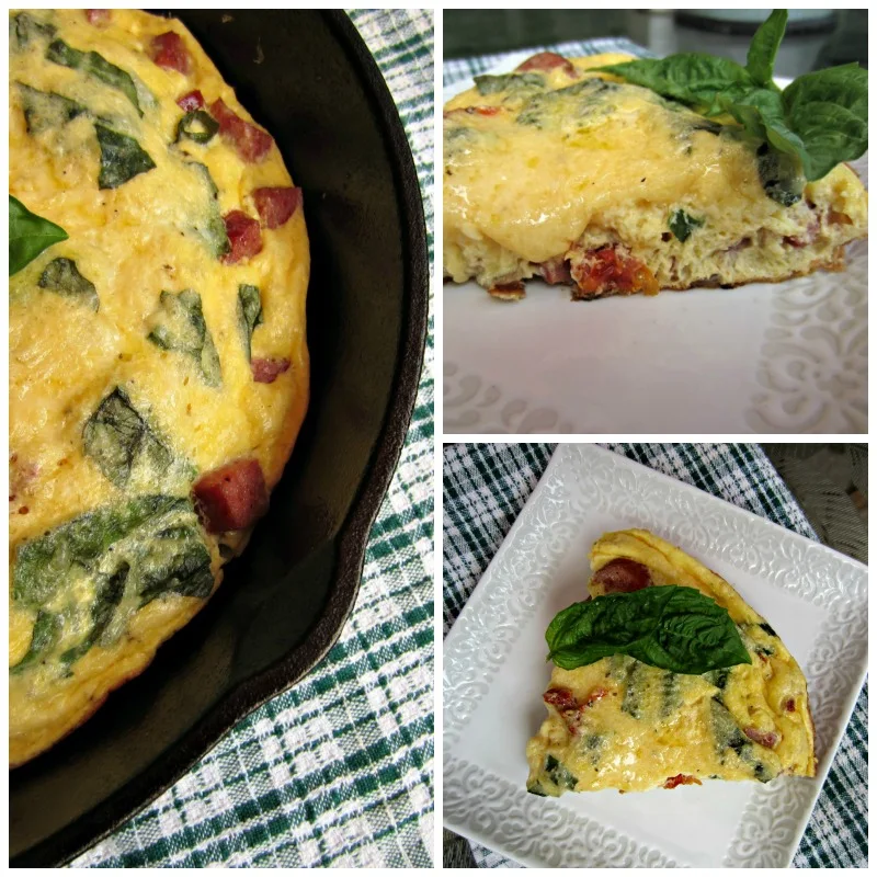 After a slow start this year, my patio basil is finally doing fantastic. I was happy to find a recipe to use some of it up in. The flavors in this frittata are amazing, especially if you love basil and sun-dried tomatoes. The turkey sausage compliments the flavors perfectly.