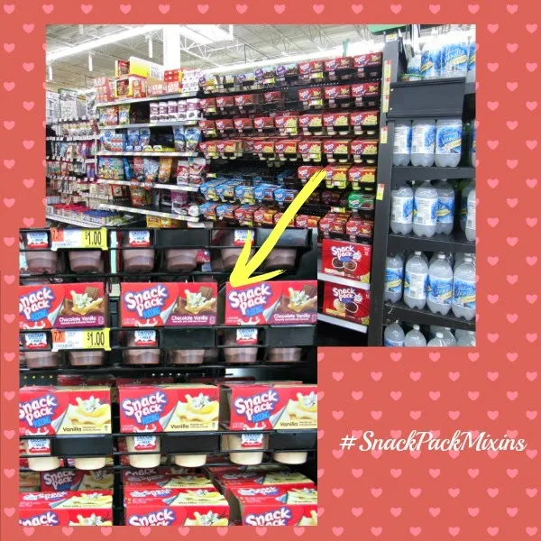 To get started on creating this dessert, I made my way to Walmart to purchase the ingredients I needed. The Snack Pack Pudding Cups were easy to find (as you can see below). I purchased both the chocolate and vanilla varieties.